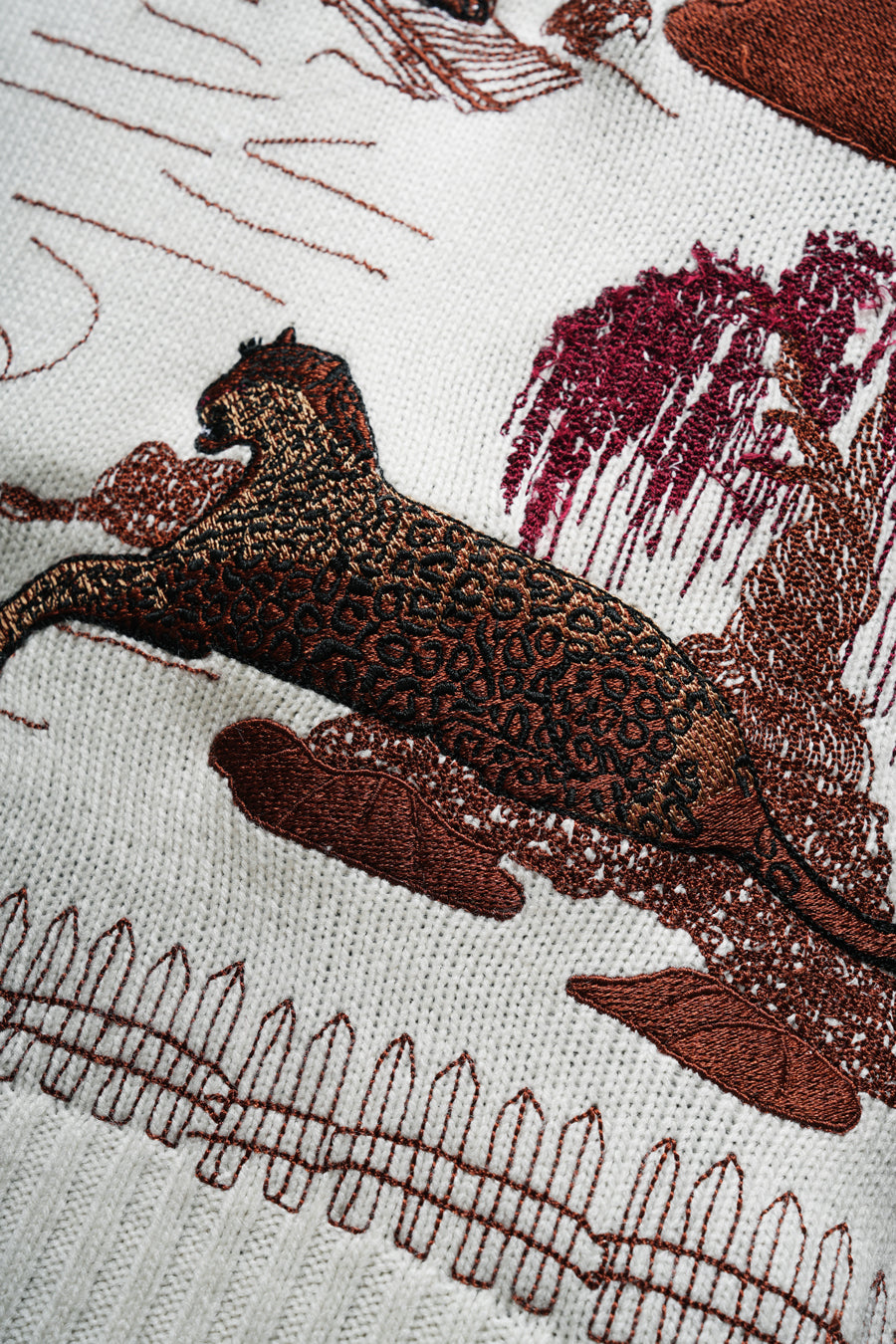THE CHEETAH AND THE RED MOON CHANNEL MYSTICAL CHINESE FELINE SYMBOLISM. ABSOLUTE FANTASY EMBROIDERED INTO A GARMENT