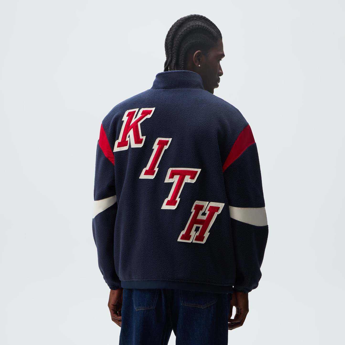 Kith-branded two-way zipper closure on the front