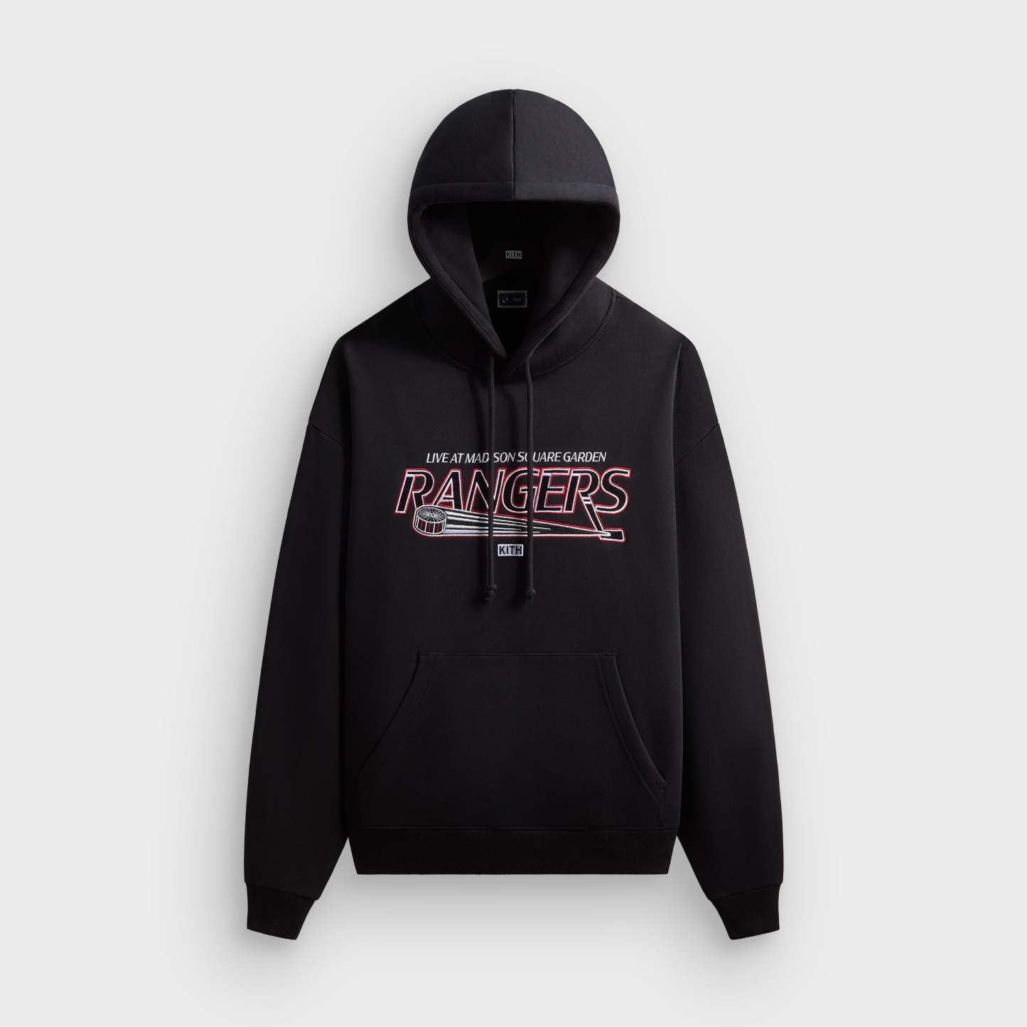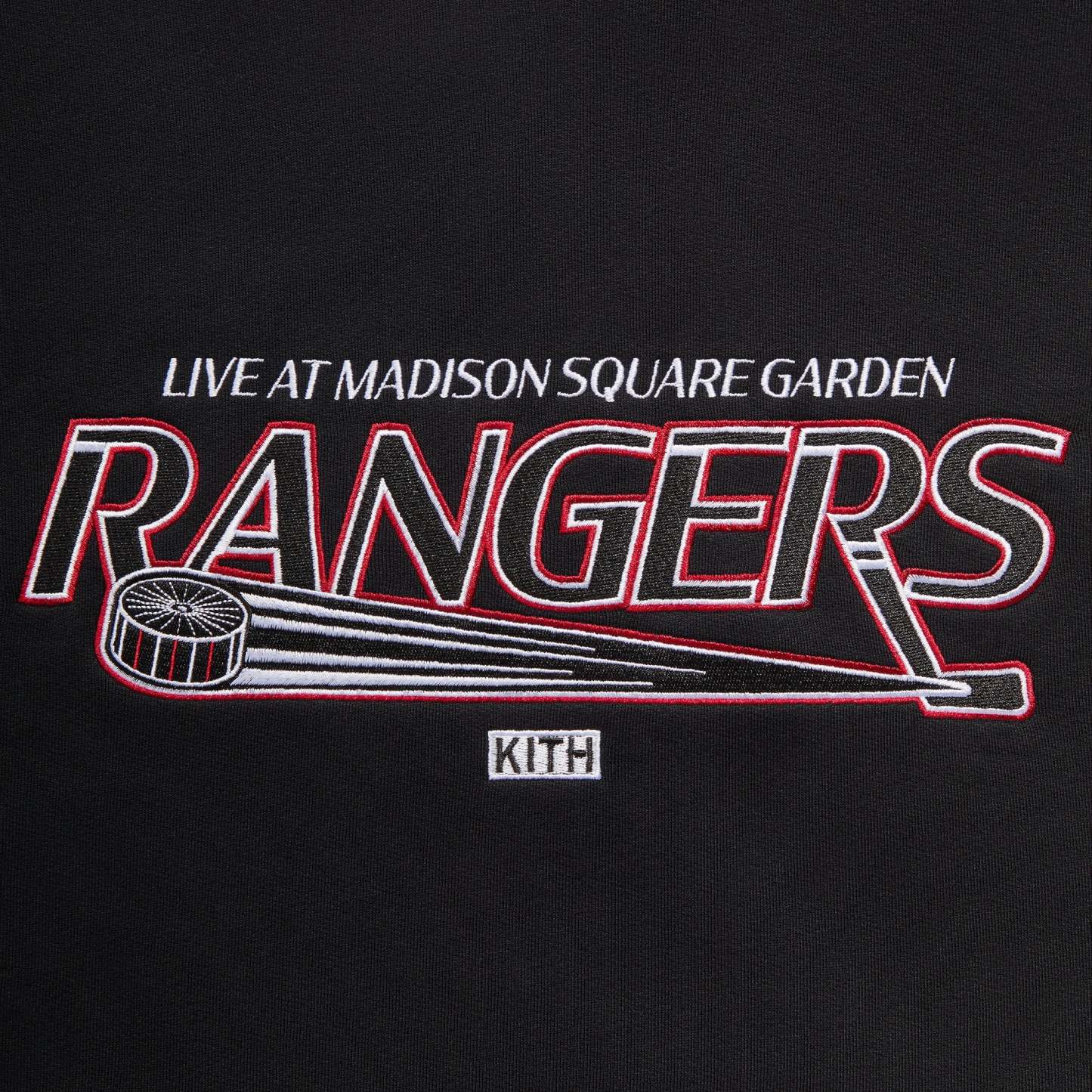 Satin-stitched embroidery on the front